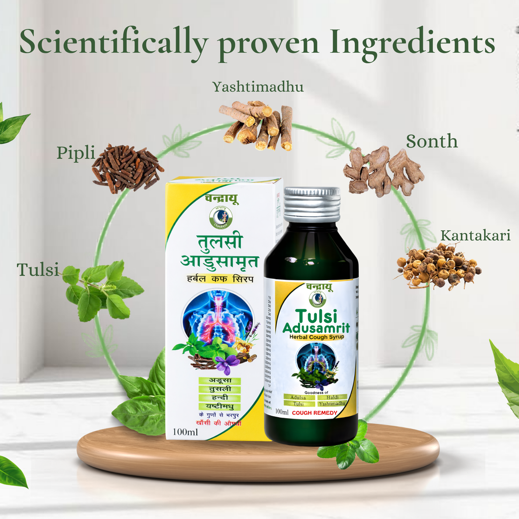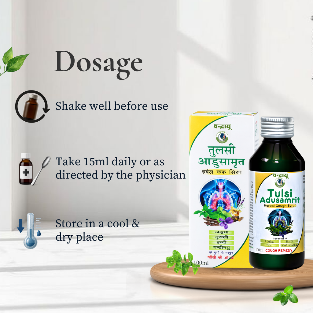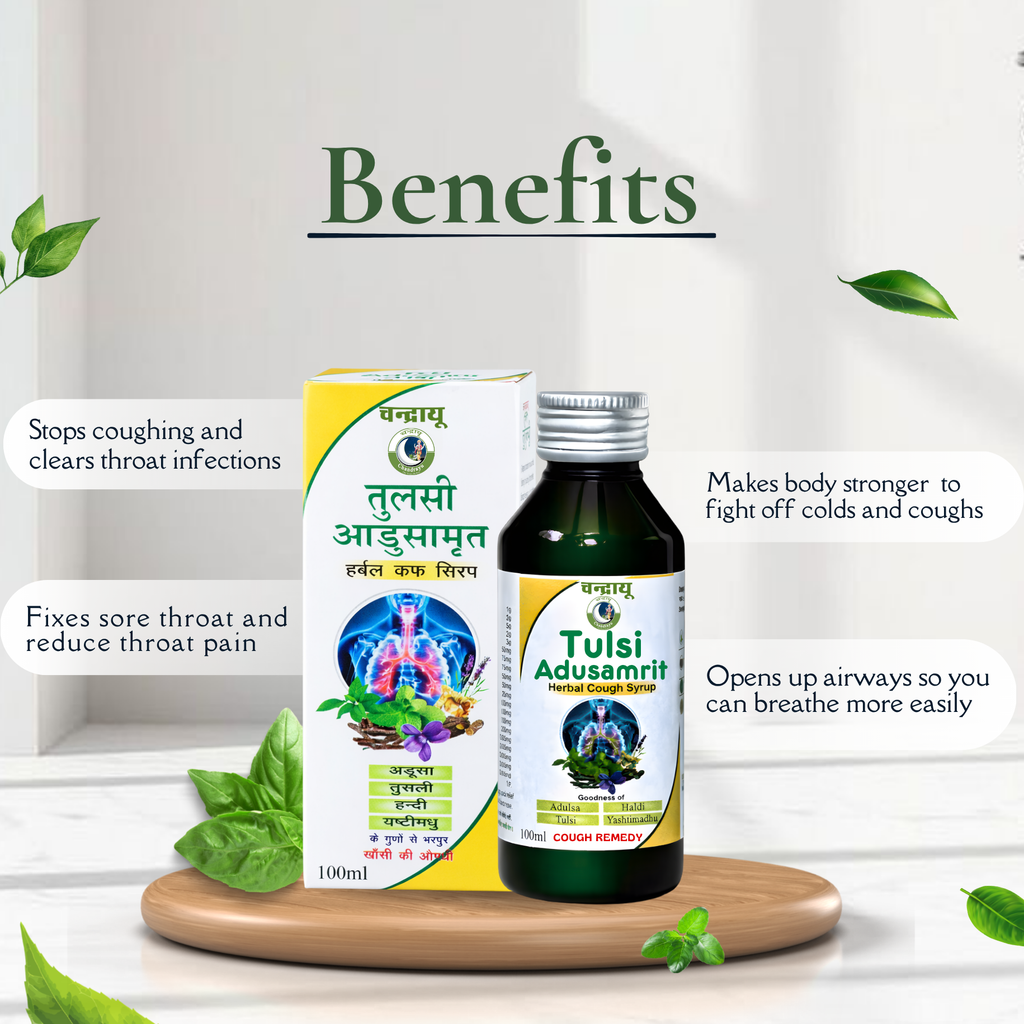 Tulsi Adusa Amrit Syrup is specially formulated to support respiratory health and provide relief from cough, cold, and throat irritation. Enriched with powerful natural ingredients like Tulsi, Kantakari, Yashtimadhu, and Adulsa, it helps soothe the throat, reduce congestion, and promote easier breathing. The formulation works as a natural expectorant and supports the immune system, making it effective for managing recurring cough and respiratory discomfort.